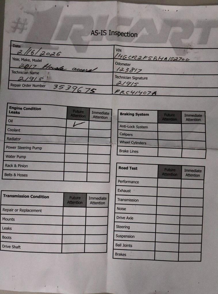 The 2017 Honda Accord Sport delivers athletic styling and responsive performance, finished in White Orchid Pearl with a Black interior. Powered by a 2.4L 16-Valve DOHC i-VTEC I4 engine paired with a Continuously Variable Transmission with Sport Mode, it offers smooth acceleration with a dynamic edge. Inside, front bucket seats with cloth trim and a 160-watt AM/FM audio system create a comfortable and driver-focused cabin. Riding on 19" alloy wheels with P235/40R19 all-season tires, this Accord Sport blends everyday practicality with bold presence on the road. Available now at #1 Ricart Express Newark!