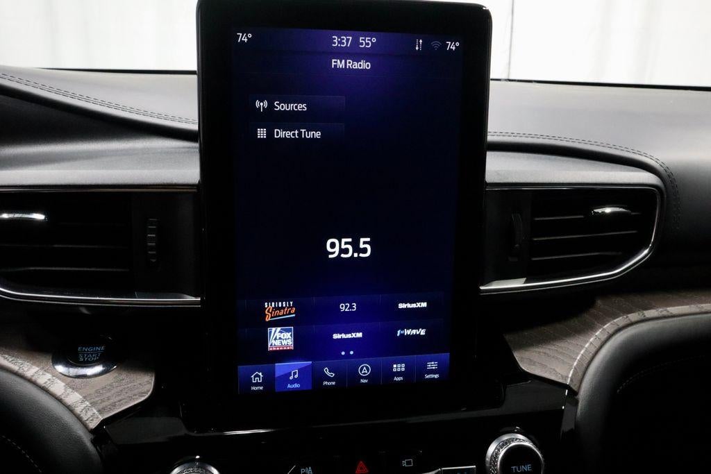 This 2022 Ford Explorer Platinum 4WD delivers premium capability and refined styling, finished in Carbonized Gray Metallic with an Ebony leather interior for a sleek, upscale presence. Powered by a 3.0L EcoBoost V6 engine paired with a 10-speed automatic transmission, it offers strong, smooth performance with confident all-weather capability. Inside, it features a luxurious cabin with a 10.1-inch LCD portrait touchscreen, voice-activated navigation, tri-zone climate control, premium leather seating, and a twin panel moonroof for an elevated driving experience. Equipped with Equipment Group 601A, Technology Package, Active Park Assist 2.0, and 21" machined aluminum wheels with painted pockets, this Explorer Platinum is built for both comfort and advanced capability. Available now at Ricart Automotive Used Car Factory.