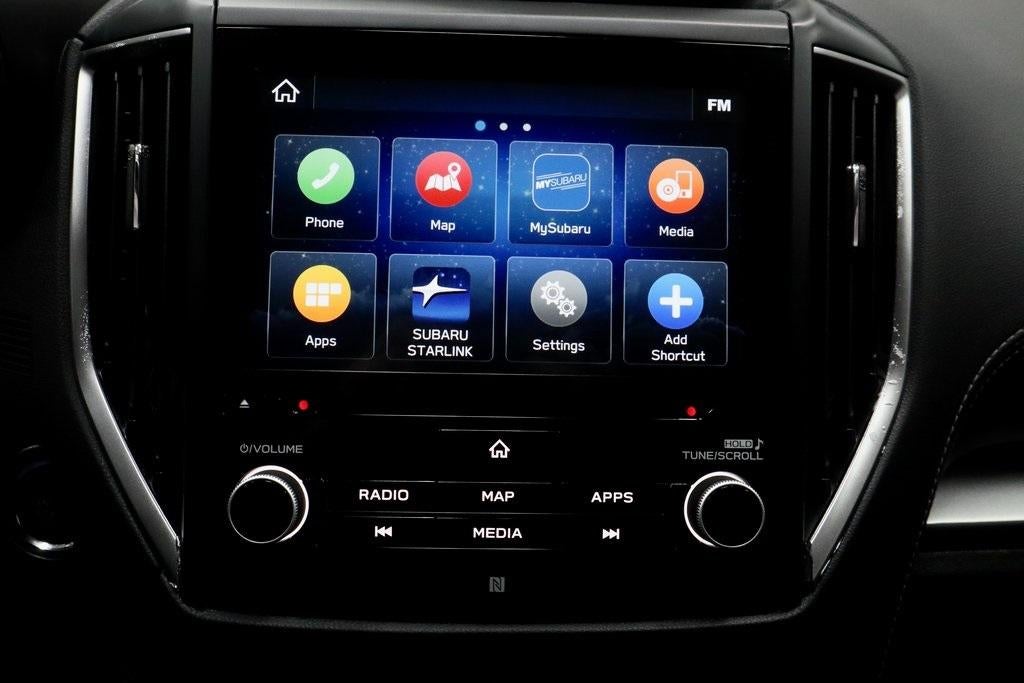 - Radio: Subaru STARLINK 8.0" Multimedia Plus System -inc: AM/FM stereo, HD Radio, single disc CD player w/MP3/WMA/CRR/RW file capability, multi-touch gesture high resolution display screen, voice activated controls, Bluetooth® audio streaming and hands-free phone connectivity, Bluetooth® hands-free SMS text messaging connectivity, Near Field Communication (NFC), iPod control capability, rear-vision camera display, SiriusXM All Access radio (4 months free trial/subscription required after), SiriusXM Travel Link (4 months free trial/subscription required after), smartphone integration: AHA, Android Auto, Apple CarPlay, Pandora, STARLINK cloud applications, 6 speakers, 3.5mm auxiliary input jack, dual USB input ports, dual USB input charge ports, roof mounted antenna and audio/satellite connected services
