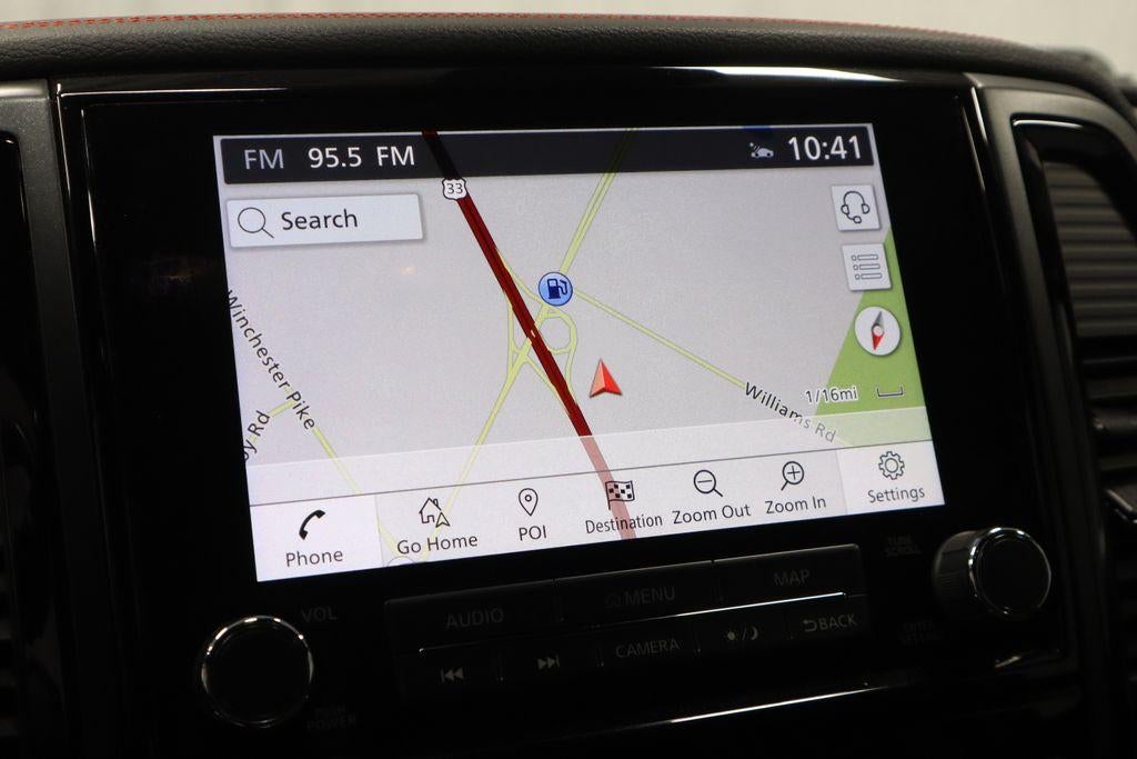 - Radio: NissanConnect w/Navigation -inc: 9" touchscreen display, 6 speakers, wireless Apple CarPlay, Android Auto, SiriusXM radio, SiriusXM Traffic, SiriusXM Travel Link w/weather, fuel prices, movie listings, stock info, sports and parking, TomTom weather, Nissan door to door navigation w/3D building graphics and satellite imagery, connected navigation features including online POI search, over-the-air map updates and online premium traffic information, 2 illuminated USB (1 type A, 1 type C) connection ports for iPod interface, Bluetooth® hands-free phone system, streaming audio via Bluetooth®, hands-free text messaging assistant, Nissan voice recognition for navigation and audio and Siri Eyes Free